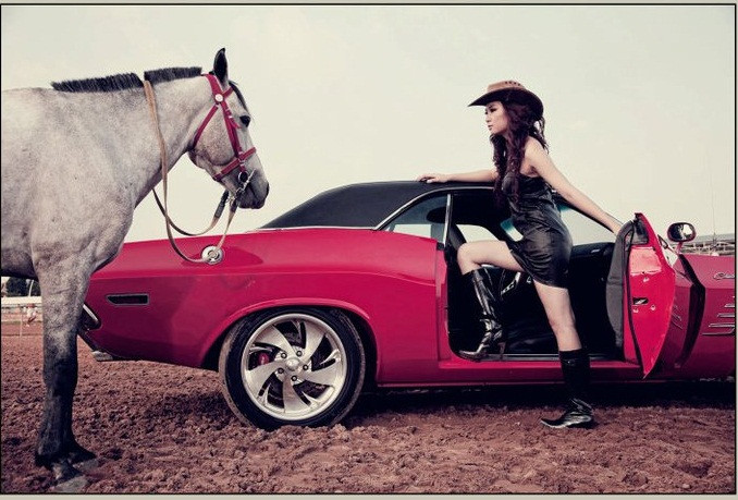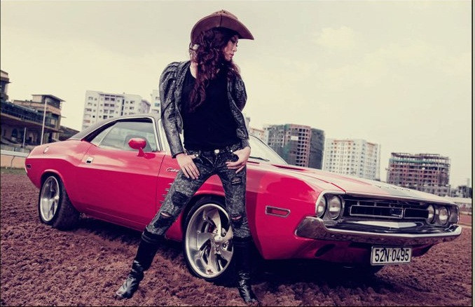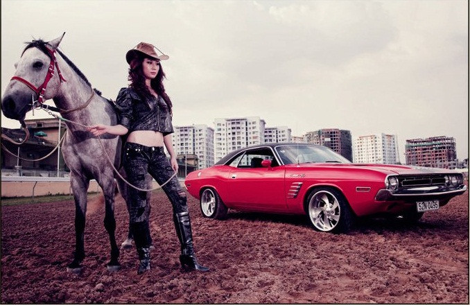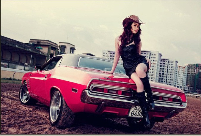 Xế cổ Dodge Challenger sóng đôi với người đẹp hiện đại Việt