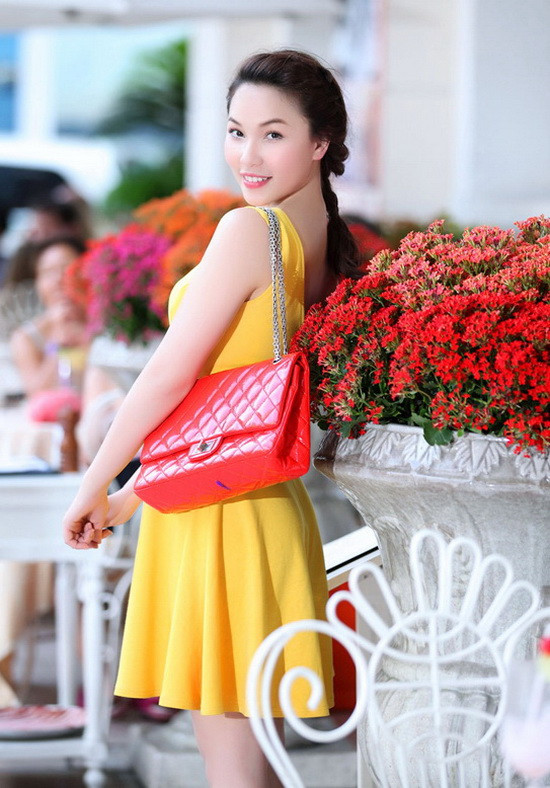 Quỳnh Thư diện đầm, giỏ Chanel