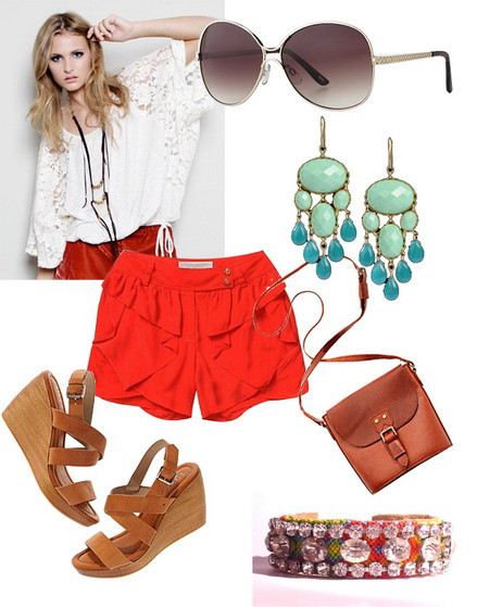 Bạn có thể phô diễn sự nữ tính với đôi giày cao gót thật sành điệu. Song với trang phục này, một gợi ý không nên bỏ qua là phối áo sơ mi hồng với váy ngắn họa tiết đỏ để trở nên thật đáng yêu, trẻ trung. Bạn cũng có thể chọn giữa một đôi giày búp bê màu nude hoặc một đôi giày cao đế bằng màu sáng, tùy theo chiều cao hiện có.