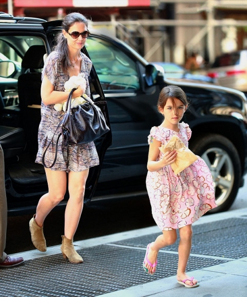 | Trước đó, ngày 2/9/2012, hai mẹ con đã cùng diện váy hoa sặc sỡ tung tăng trên đường phố New York |