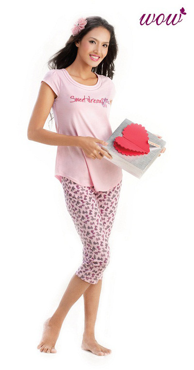 | Cô nàng đáng yêu trong những mẫu thiết kế in nơ xinh xắn, chất liệu thun 4 chiều đem đến sự thoải mái và năng động |