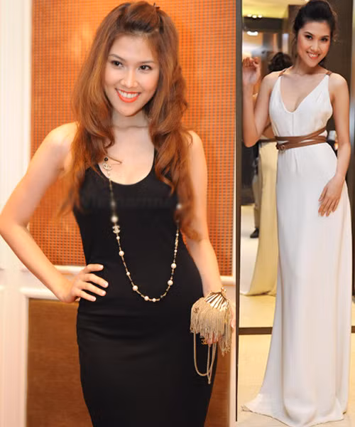 | Lợi thế của cô được những chiếc đầm ôm eo tôn vinh rõ nét. |