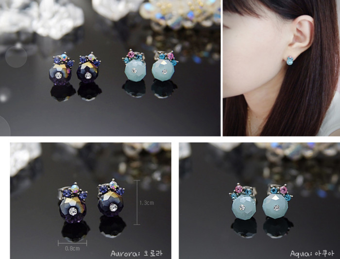 | Hoa tai tròn với nhiều màu đá pha trộn tạo nên vẻ nổi bật dù kiểu dáng của nó khá đơn giản. |