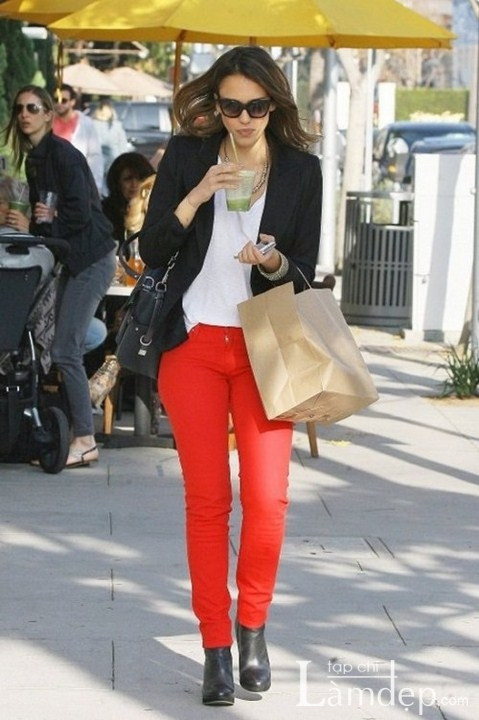 | Xu hướng jeans đỏ dang được các Sao Hollywood yêu chuộng. |