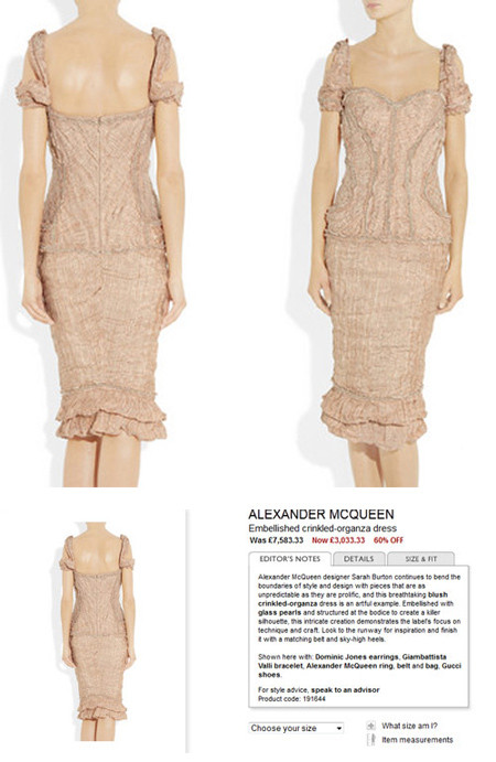 | Bộ váy của Alexander McQueen được Lý Nhã Kỳ diện có giá 7.583,33 bảng (gần 300 triệu đồng). Tuy nhiên, các tín đồ thời trang đừng vội "choáng" bởi bạn có thể "săn lùng" bộ xiêm y này trên mạng trong mùa giảm giá với con số "mềm mại" và kinh tế hơn rất nhiều, chỉ còn hơn 3.000 bảng tức là khoảng hơn 90 triệu đồng. |