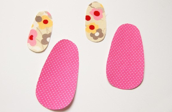 Cắt hai mảnh vải khác màu thành hai kích cỡ hình đôi giày (như hình dưới):