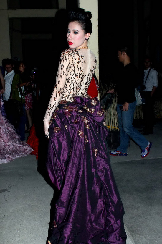 | Người đẹp Chung Thục Quyên cho biết, cô rất tự tin khi diễn chiếc đầm ren xuyên thấu của NTK Hoàng Hải vì nó vừa vặn với cô. |