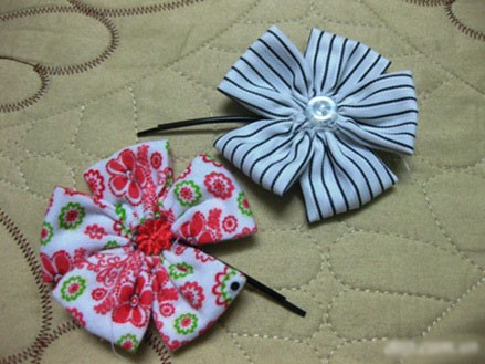 Với nhiều mẫu vải khác nhau, bạn có thể làm cho bé những chiếc kẹp mầu sắc phù hợp với trang phục.
