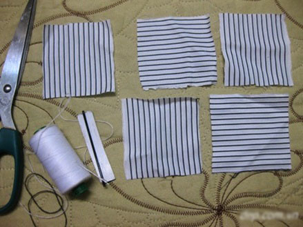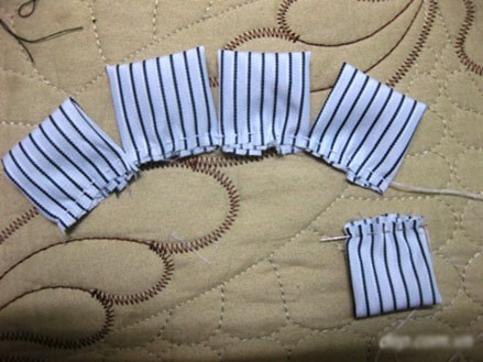 Khâu nối liên tiếp các vuông vải nhỏ với nhau. Rút chặt chỉ, các vuông vải nhỏ sẽ chun lại vào một tâm điểm là nhụy hoa. Tiếp đó khâu nối cánh hoa đầu và cuối ở phần nhụy.