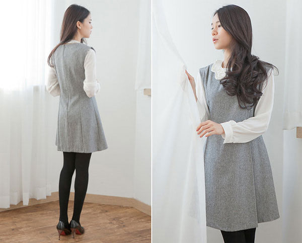 | Trong tiết trời lạnh của mùa đông, bên cạnh những chiếc váy dài tay ấm áp, váy không tay với chất liệu chủ yếu là len, dạ hay những loại vải dày dặn cũng rất được yêu thích bởi sự đa dạng về kiểu dáng, màu sắc và dễ dàng khi mix đồ. |