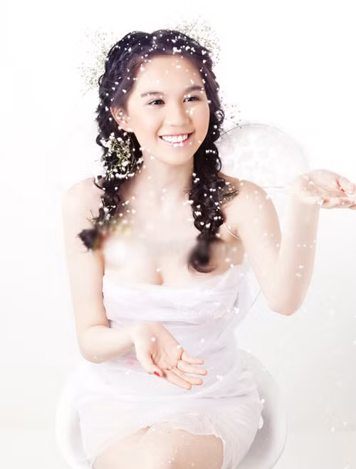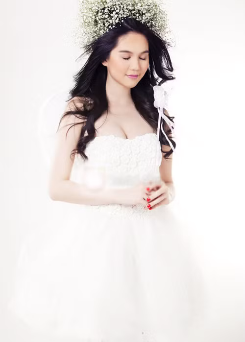 | Hình ảnh tuyệt đẹp của Ngọc Trinh hóa trang thành thiên thần Noel. |
