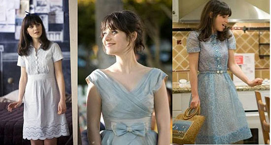 | Một cô gái kỳ lạ với mái tóc đen và phong cách cổ điển. Hình tượng nhân vật Summer Finn do Zooey Deschanel thủ vai sẽ không hoàn hảo nếu không có những chiếc váy xanh da trời đầy vẻ duyên dáng và ngây thơ ấy. |