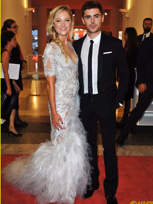 | Fiammetta Cicogna đẹp như nàng thiên nga trắng muốt kiêu kỳ trong bộ váy ren pha lông vũ của Alberta Ferretti. |