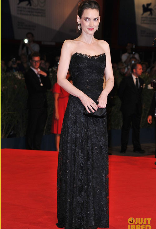 | Winona Ryder vô cùng kiều diễm thanh lịch với bộ đầm cúp ngực ren đen sang trọng của Dolce & Gabbana. |