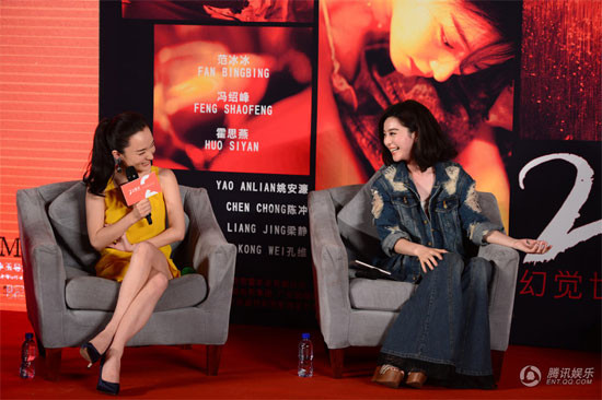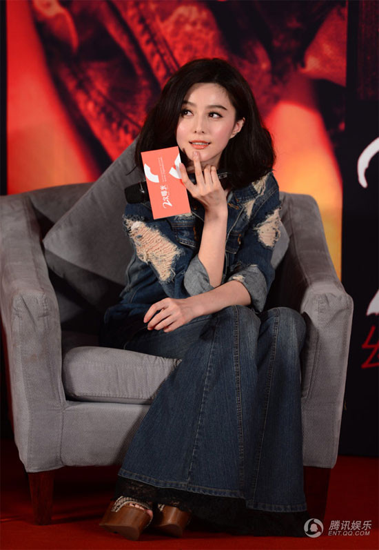 Xuất hiện tại buổi họp báo giới thiệu trailer của bộ phim Double Xposure tại Bắc Kinh mới đây, Phạm Băng Băng mang đến nhiều bất ngờ cho người hâm mộ về phong cách đậm chất "cái bang". Cô diện nguyên 1 bộ đồ jeans với áo rách "tả tơi" và quần leo lùng phùng. Cùng với đó là mái tóc bồng chấm vai ấn tượng. Không điệu đà, thướt tha trong những chiếc váy mềm mại như trước, lần này 'Nàng Kim Toả' vẫn toát lên vẻ đẹp quyến rũ và hút hồn.