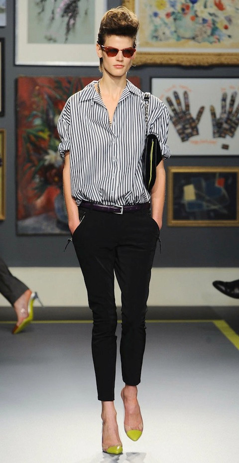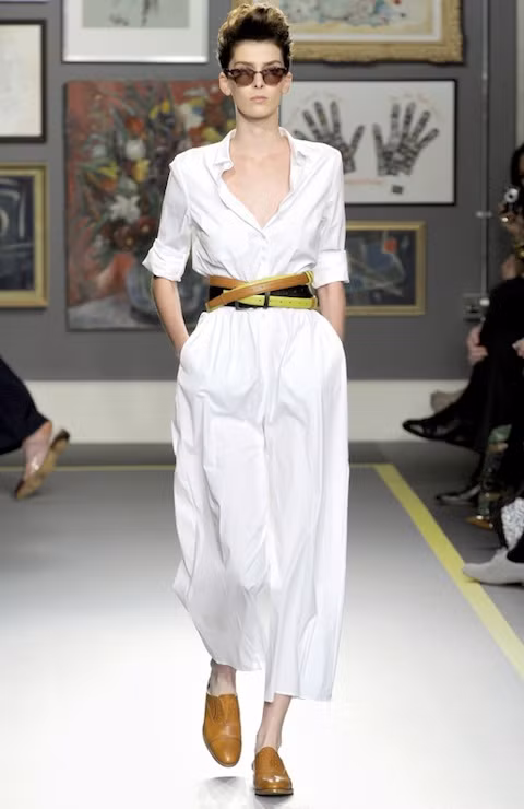 Những chiếc thắt lưng da bản nhỏ đã trở thành điểm nhấn tạo nên ấn tượng nhẹ nhàng và thanh thoát trong những BST Xuân Hè của Jaeger London, D&G hay Elie Tahari.