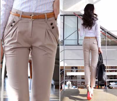 1. Một chiếc quần tây Một chiếc quần tây là lựa chọn hàng đầu đối với một nữ nhân viên văn phòng. Nhưng bạn hãy cẩn thận chọn lựa và không nên mặc chật quá hoặc lỏng quá. Hãy chọn lựa kiểu dáng để tôn lên cơ thể của bạn.