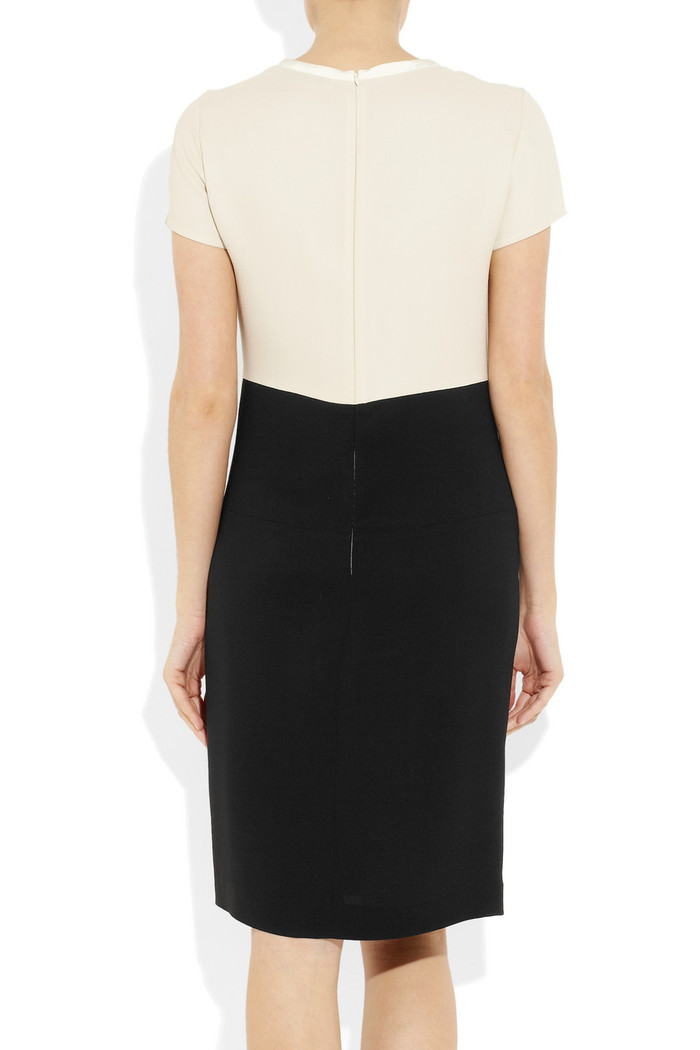 | Váy Stella McCartney (30 triệu đồng) với phần mép váy và thân sau màu đen, tạo cảm giác thon gọn trong dạng váy xuông trẻ trung |