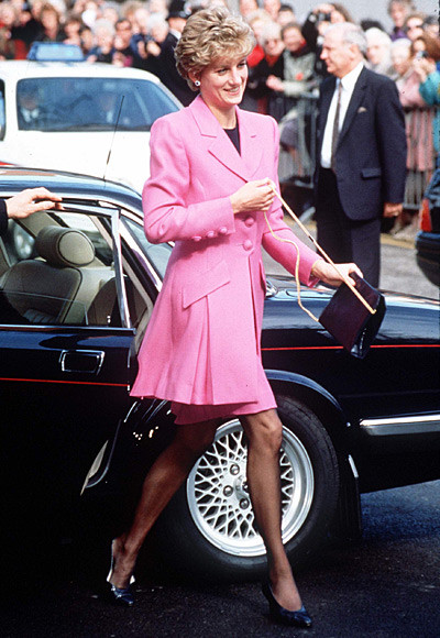 | Đến thăm đơn vị quân đội quốc gia, Công nương thật trang nhã với bộ trang phục màu hồng của Gianni Versace. |
