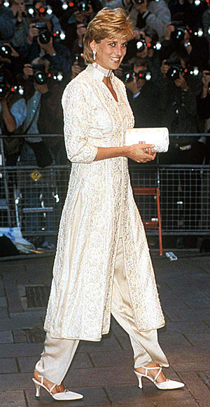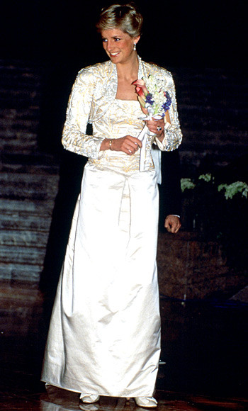 | Công nương Diana trong chiếc váy minidress của nhãn hiệu Christina Stambolian. Ngay ngày hôm sau, tất cả các trang nhất của báo chí nước Anh đều đồng loạt đưa tin và bình chọn cho nét duyên dáng và tự tin ở tuổi 32 này của Công nương. |