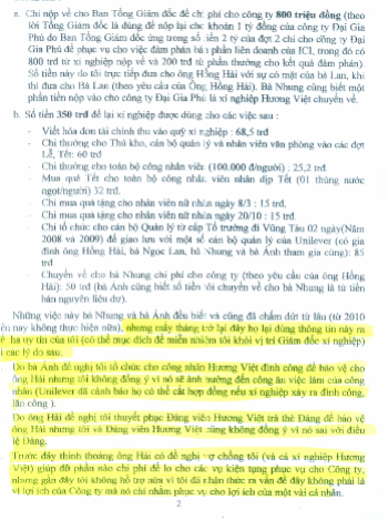 Biên bản giải trình của bà Lương Thị Thanh Loan nói rõ những chi phí cho khoản tiền "bán trộm" nguyên liệu Unilever.