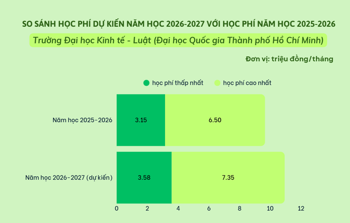 Học phí của Trường Đại học Kinh tế - Luật (Đại học Quốc gia Thành phố Hồ Chí Minh) cũng điều chỉnh so với năm ngoái.
