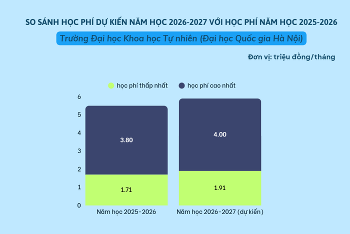 Do đó, mức học phí năm học 2026-2027 dự kiến dao động từ 1,91 - 4 triệu đồng/tháng, cao hơn so với mức 1,71 - 3,8 triệu đồng/tháng của năm học trước.