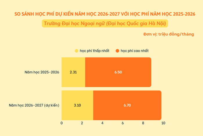 Năm học 2026-2027, Trường Đại học Ngoại ngữ (Đại học Quốc gia Hà Nội) dự kiến học phí các chương trình đào tạo dao động từ 3,1 - 6,7 triệu đồng/tháng.