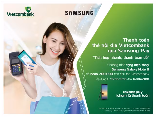 2. Chương trình ưu đãi dành cho các chủ thẻ nội địa Vietcombank khi thanh toán qua Samsung Pay từ ngày 15/03/2018 đến ngày 14/06/2018: