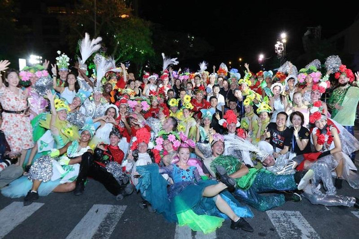 Đi cùng với những xe hoa lộng lẫy ánh đèn đủ màu sắc, rộn ràng âm nhạc là những diễn viên đến từ nhiều quốc gia, trong những bộ trang phục cũng mang hình ảnh các loài hoa đó.