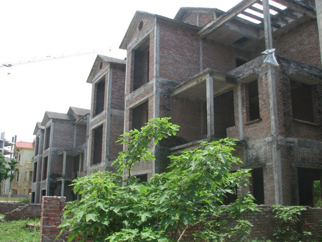| Thị trường BĐS vẫn ảm đạm khiến nhiều công trình, biệt thự siêu sang được quy hoạch trong dự án khu đô thị mới Cổ Nhuế - Xuân Đỉnh 6 năm qua giờ như những ngôi nhà hoang giữa đồng cỏ dại. |