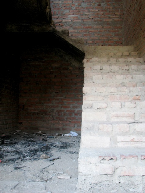 | Những bức tường xây dang dở đã mọc rêu xanh |