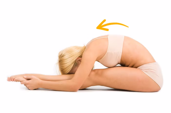 Cúi đầu về phía trước và cố gắng chạm tay vào đầu gối của bạn. Giữ yên tư thế này trong 2-3 phút và hít thở sâu. Làm như vậy sẽ kéo căng cơ lưng.