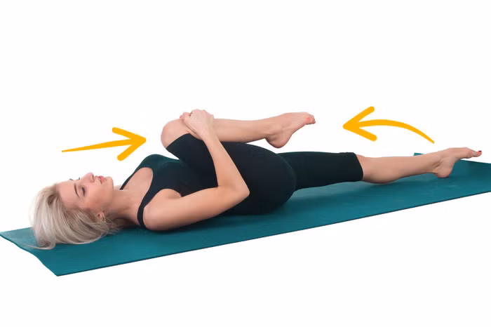 Cách thực hiện: Nằm ngửa và gập một đầu gối lên, giữ chân còn lại song song với mặt đất. Kéo một đầu gối lên đến ngực của bạn trong khi giữ cho đầu gối kia ổn định và thẳng. Giữ tư thế này trong vài giây và lặp lại 3-4 lần.