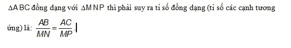 - Khi viết tỉ số đồng dạng của hai tam giác các em cũng thường viết chưa chính xác, chẳng hạn: