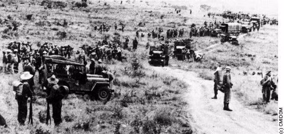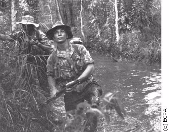 | Lính gác của Việt Minh (phải) và lính Pháp (trái) tại Hội nghị Trung Giã. (nguồn.manhhai). |