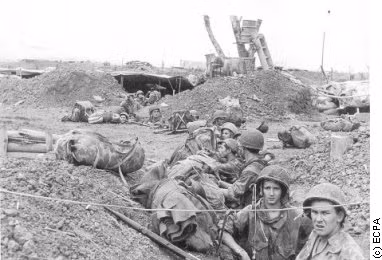 | Quân đội Pháp chiến đấu trong giao thông hào. |