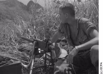| Tổng tư lệnh Gilles trong giờ giải lao. Gilles là một viên tướng chỉ huy sắt đá khi đó đã ngoài 50 tuổi, từng được phong tặng huân chương chiến sĩ về nhảy dù ở tuổi 44. Gilles chỉ huy hàng ngàn tay lính ở khu vực Đông Dương và là một sĩ quan cao cấp trong chiến dịch Điện Biên Phủ. |