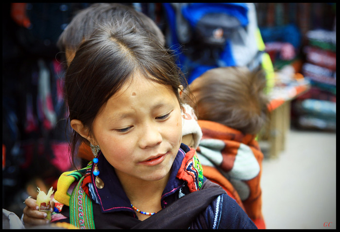 | Nước da trắng bóc của một cô bé người Dao đỏ ở Lào Cai. |