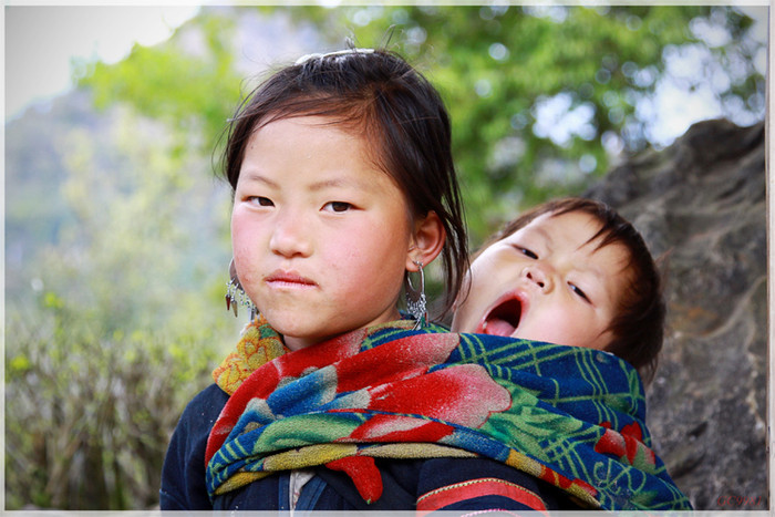 | Hai chị em cô bé người H'Mong đen ở Lào Cai. |