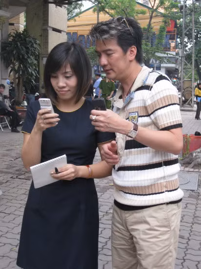 | Có vẻ như Mr Đàm viết thêm điều gì đó khiến anh công an vui cười tít mắt... |