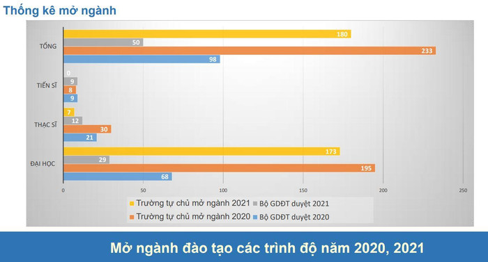 Kết quả thực hiện tự chủ ở các cơ sở giáo dục đại học cho thấy, thực hiện tự chủ trong việc mở ngành đào tạo/chương trình liên kết đào tạo là một nội dung quan trọng trong hoạt động tự chủ.