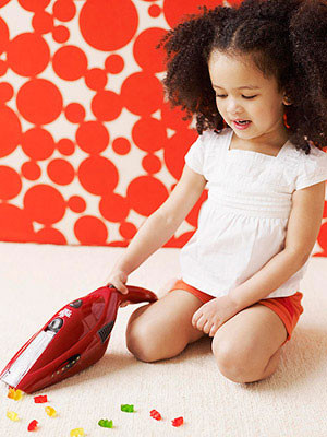 Cho bé đóng vai robot hoặc siêu nhân khi dọn đồ chơi. Cha mẹ có thể tìm những bài hát vui nhộn khi bé làm việc.