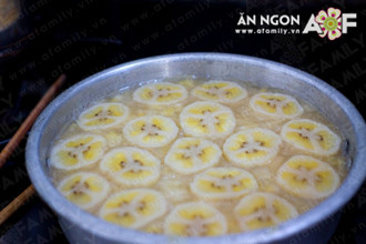 | Dùng vài lát chuối đã cắt xếp trên mặt bột bánh cho đẹp mắt. |