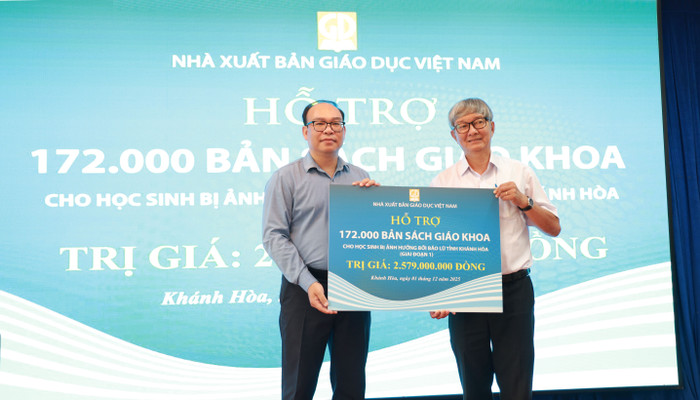 Nhằm góp phần hỗ trợ các em học sinh cũng như ngành giáo dục tỉnh Khánh Hòa nhanh chóng khắc phục hậu quả của đợt mưa lũ lịch sử trong tháng 11 vừa qua, ngày 1/12/2025, tại Sở Giáo dục và Đào tạo tỉnh Khánh Hòa, Nhà xuất bản Giáo dục Việt Nam đã tổ chức buổi trao tặng sách giáo khoa cho học sinh các trường bị ảnh hưởng bởi thiên tai, mưa lũ của tỉnh.