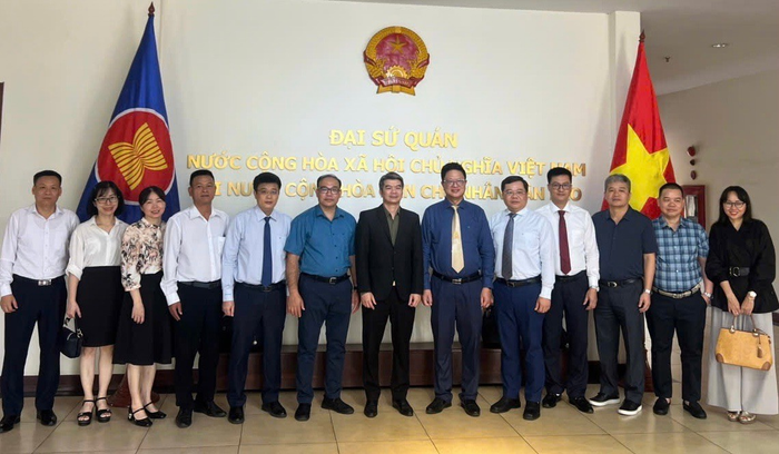 Đoàn công tác NXBGDVN làm việc tại Đại sứ quán Việt Nam tại Lào.