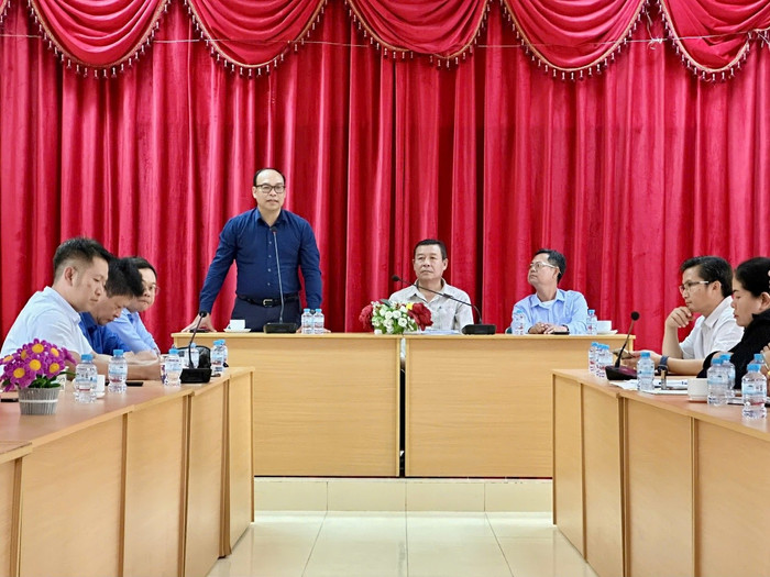 Ông Đặng Thanh Hải - Phó Tổng Giám đốc NXBGDVN phát biểu tại buổi làm việc với Trường Đại học Souphanouvong.