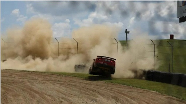 Trong một cuộc đau, chiếc Ford Mustang đã chạy quá nhanh dẫn tới mất lái khi vào cua, kết quả là chiếc xe "bay" ra khỏi đường đua và lao về phía rào chắn. Thật may mắn là nhờ lớp cát dày và hàng rào lốp bên đường mà Ford Mustang may mắn không bị hư hỏng nghiêm trọng.