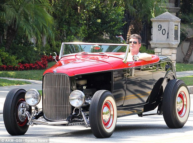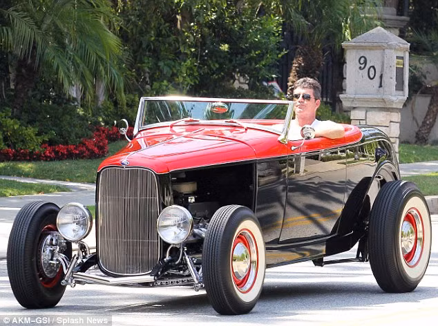 | Simon Cowell ngồi sau vô lăng chiếc hot rod cổ. |