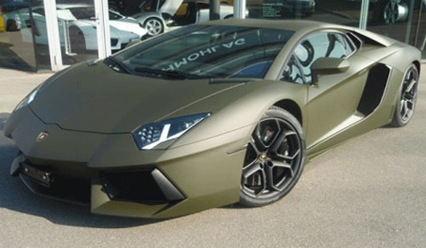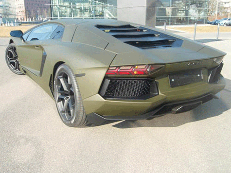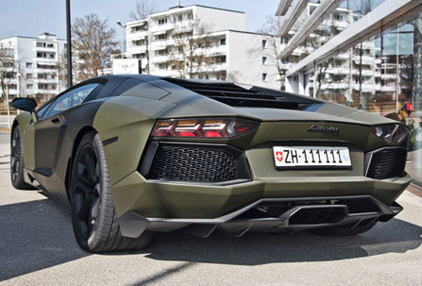 | Chiếc Lamborghini Aventador LP700-4 với màu xanh quân đội. |